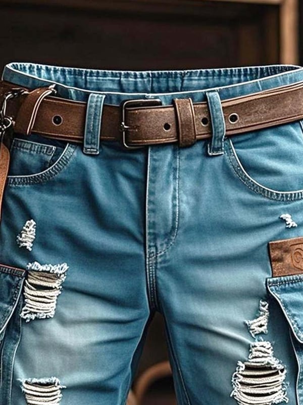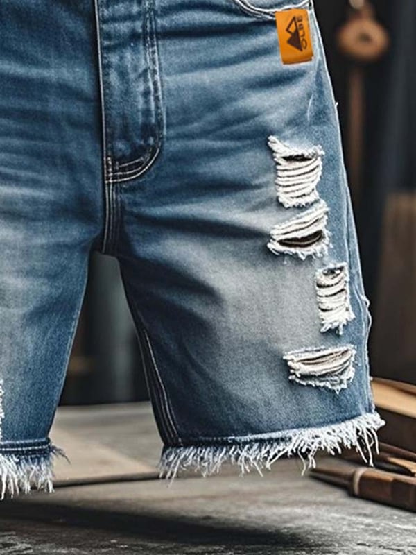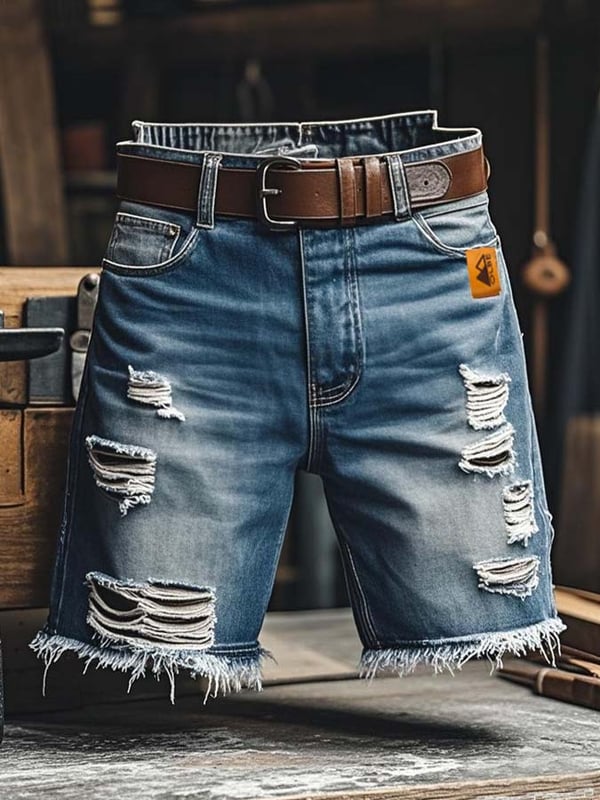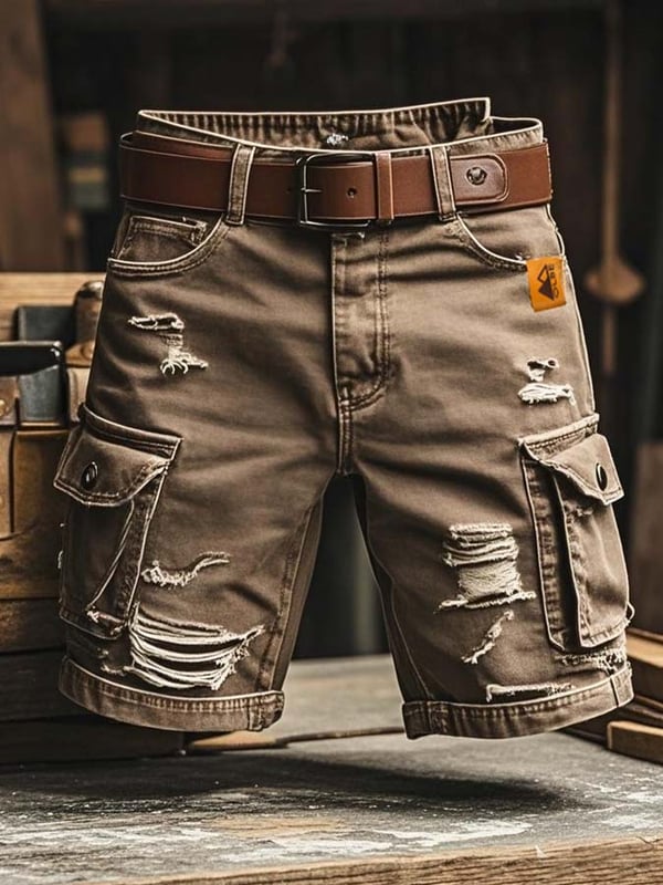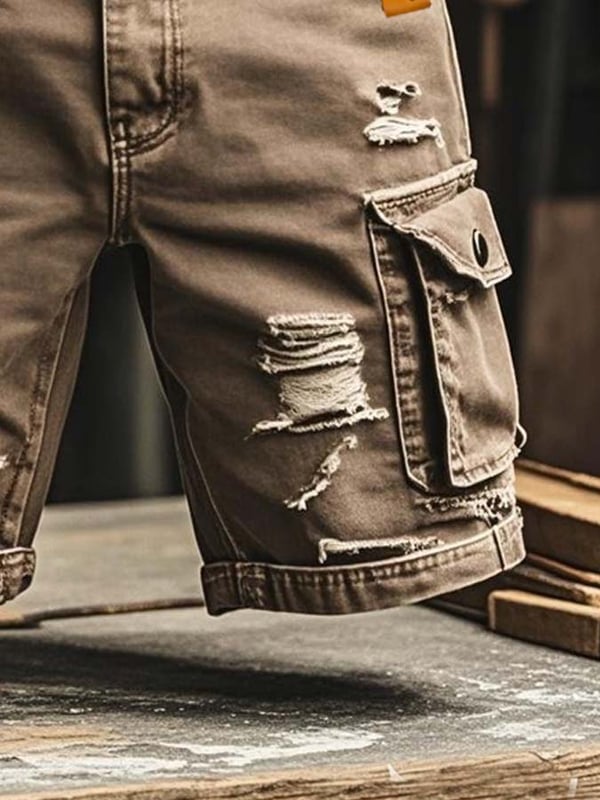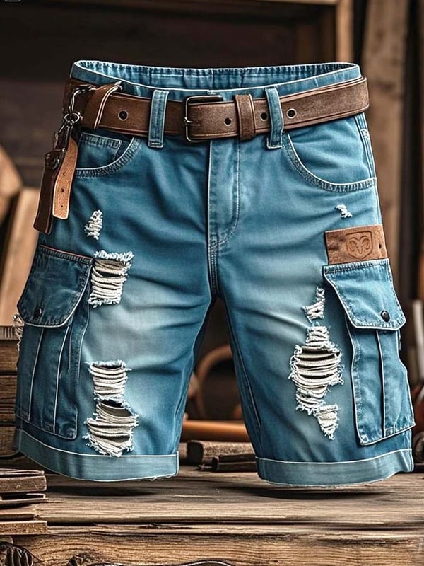 Pantaloncini Funzionali Vintage da Uomo in Denim Strappato