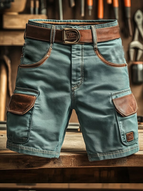 Pantaloncini Cargo Da Uomo In Stile Vintage Con Tasche e Cuciture Funzionali (Con Cintura)