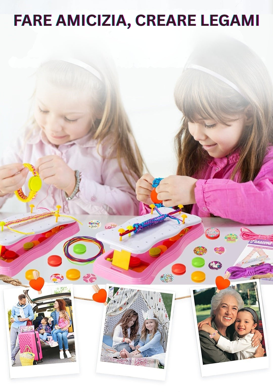 Rafforza i legami di amicizia: Progettato per essere condiviso, il kit permette ai bambini di creare e scambiarsi braccialetti dell'amicizia. Promuove il legame attraverso lo scambio di regali e le attività di gruppo. Che si tratti di pigiama party, appuntamenti di gioco o feste, aiuta a costruire ricordi indelebili.
