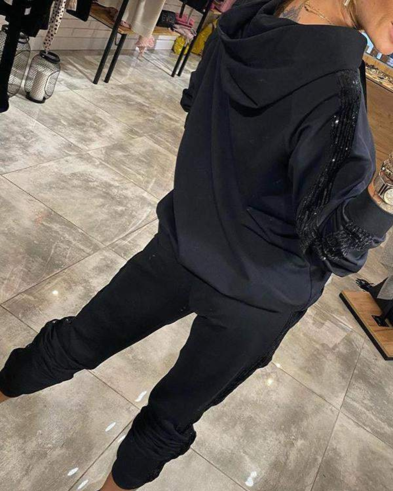 ✅Eleganti dettagli con paillettes: Il set due pezzi Gretta è impreziosito da pannelli con paillettes scintillanti lungo le maniche e le gambe dei pantaloni. Questi dettagli riflettono magnificamente la luce, aggiungendo un tocco di brillantezza sottile ma accattivante ai tuoi outfit quotidiani. Bilancia perfettamente la disinvoltura casual con un pizzico di glamour, rendendolo ideale sia per rilassarsi che per uscire.